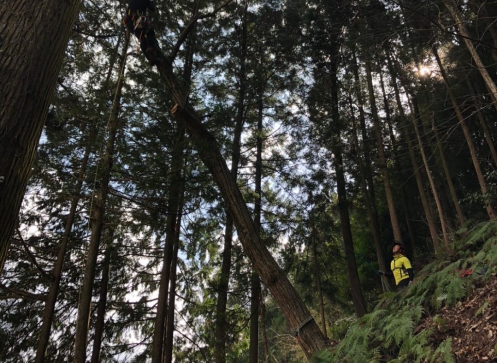 ロープ等を使用し作業しにくい場所や機械が使用できない場所でもお安く作業できる特殊伐採の熟練の技術を持っております。