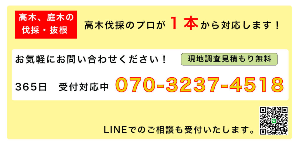 木の高さ、太さ、作業内容を考慮してお見積りを算出します。